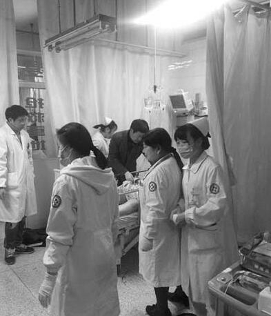 抢救室里,医务人员对女子展开全力救治