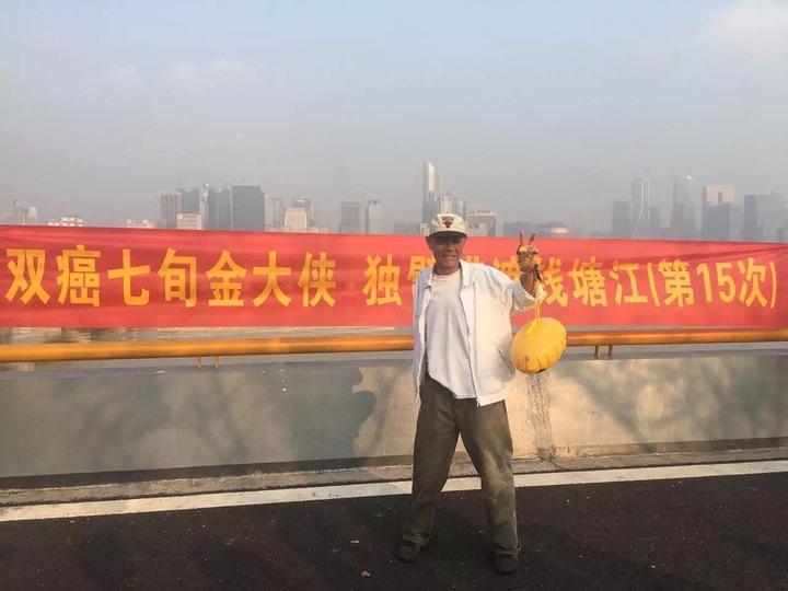 浙江附中退休语文老师金文允今年第15次横渡钱塘江。他在所有的选手中显得很特殊:不仅因为他是“独臂侠”,他还是七旬老人和抗癌勇士。今年年初,他因为胆囊癌和胃癌,50天内动了三次手术。今天为了证明自己,独臂侠金文允又一次挑战横渡钱塘江。