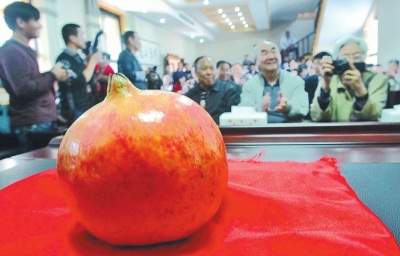 最激动人心的是最后的石榴王拍卖。主持人说,本届评出的石榴王,重927克,由官峪村的果农黄会敏种出,起拍价为1.5万元。当主持人刚一宣布“竞拍开始”,持8号牌的企业代表立即喊出“2万元”,随后持22号牌的企业代表追喊“2.2万元”,5号企业紧跟着叫出“2.4万元”,18号企业又叫出2.8万元……竞拍现场异常紧张激烈,最终持22号牌的女士毫不示弱,喊出3万元的天价,将石榴王拍下。
