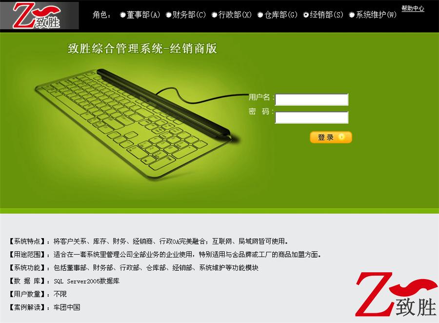 【系统特点】:将客户关系、库存、财务、经销商、行政OA完美融合;互联网、局域网皆可使用。