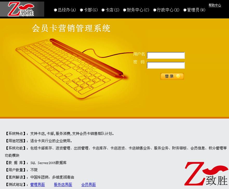 【系统特点】:支持卡店,卡部,服务消费,支持会员卡销售排队计划。 【用途范围】:适合卡类行业的企业使用。 【系统功能】:包括卡部库存、进货管理、出货管理、卡店库存、卡店进货、卡店销售业务、服务业务、财务审核、会员信息、积分管理等功能模块 【数 据 库】:SQL Server2005数据库 【用户数量】:不限 【案例解读】:中国车团网,多维度润滑油